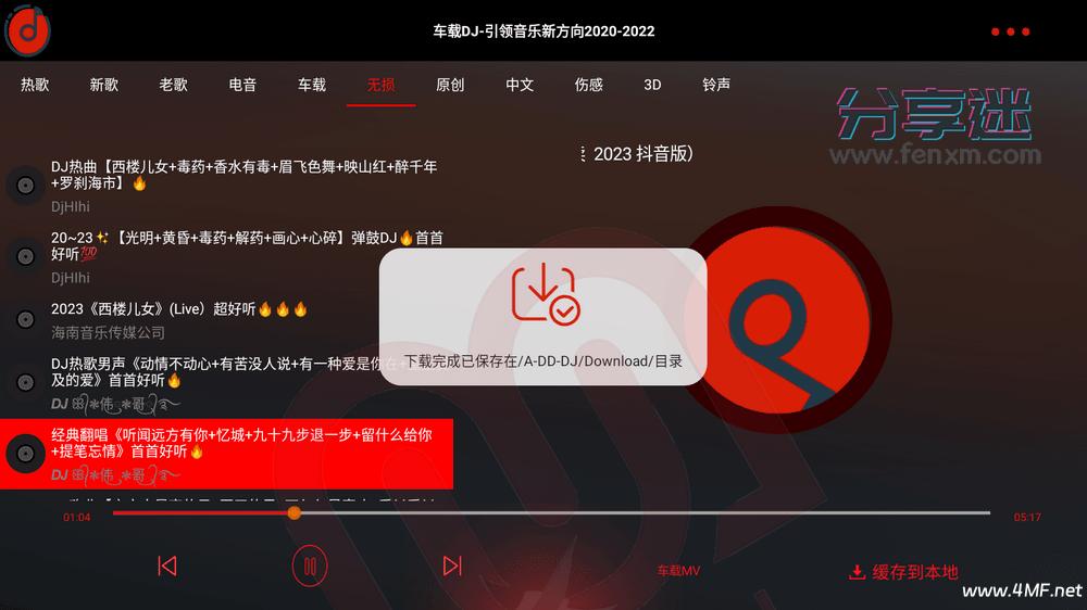 所有音乐资源都支持下载,点击『缓存到本地』即可,当然也要注意内存空间,DJ类音乐时长都很长,于是每首歌所占大小都很大。